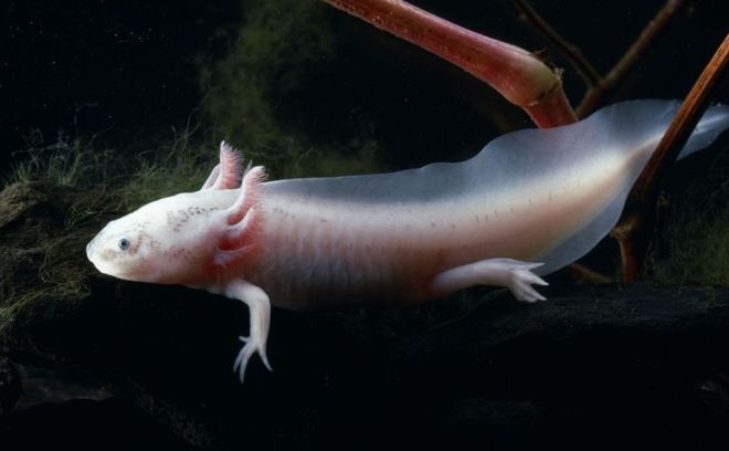 我怀疑他们说的是墨西哥钝口螈(Ambystoma mexicanum),就是所谓的六角恐龙,它们能保持带有外鳃和尾鳍的水生幼体形态,同时在水中达到性成熟并繁殖!