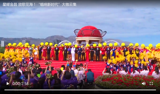 8月30日,中国中央广播电视总台“唱响新时代”主题节目在甘肃省金昌市紫金苑景区录制。主持人刚强、张蕾与著名歌手庞龙、周笔畅等同台献礼,现场2000余名观众共同“唱响新时代”,放歌紫金花海。