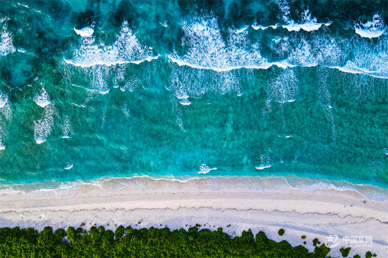 在美济礁,官兵利用环境监测站监控绿化数据,全面动态掌握植被生长情况,湿地公园、诺丽果园等一批生态示范点见证着岛礁固砂覆绿工作的显著成果……随处可见的绿植让南海岛礁焕发出前所未有的生机活力,绿色已然成为南海岛礁的全新底色,碧海绿洲成为中国南海上的一幅崭新画卷。