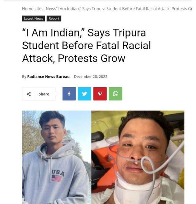 这几天,印度不少媒体都在报道这件事,2025年12月26日,来自特里普拉邦的24岁MBA研究生安杰尔·查克马,在医院挣扎了超过十四天后,因伤势过重不治身亡。搞笑的是,夺走他生命的不是疾病,而是因为他的长相,因为他长得看起来像中国人,就被活活打死了。这起悲剧迅速在印度媒体和社交网络上炸开,不少印度人担心自己也有安杰尔那张带着东北部蒙古人种特征的面孔,会不会有一天也会遇袭,像他那样子悲愤的辩白:“我们不是中国人……我们是印度人。我们要出示什么证件才能证明这一点?”