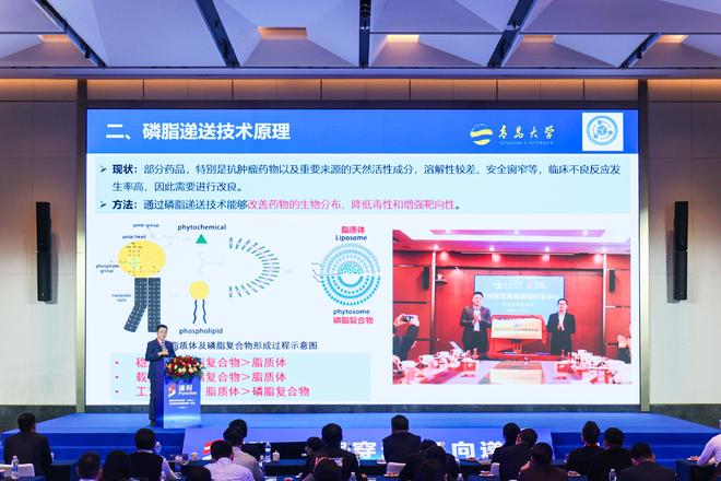 青岛大学药学院院长孙勇分享了磷虾磷脂在药物递送中的最新研究进展:将水飞蓟宾、紫杉醇、人参皂苷等难溶性药物与磷虾磷脂制成复合物后,其溶解性和体外溶出度显著提升,且效果显著优于传统大豆磷脂复合物。这一发现为脂肪肝、肿瘤、阿尔茨海默病等疾病的改良型新药研发开辟了新路径。