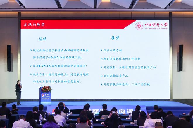 (中国药科大学生命科学与技术学院教授徐寒梅分享《南极磷虾活性多肽分子发现研究进展》)