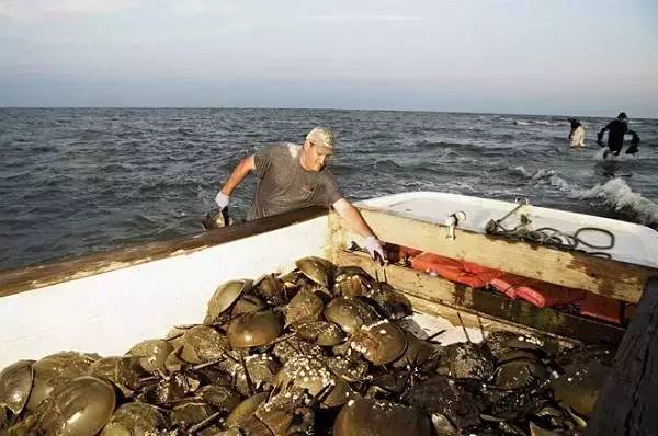 只有美国自然资源部授权的渔民才能抓捕鲎,它们通常在美国南卡罗来纳州的沙滩上产卵,渔民所要做的只是将它们从浅滩上拾起,再放入渔船之中。
